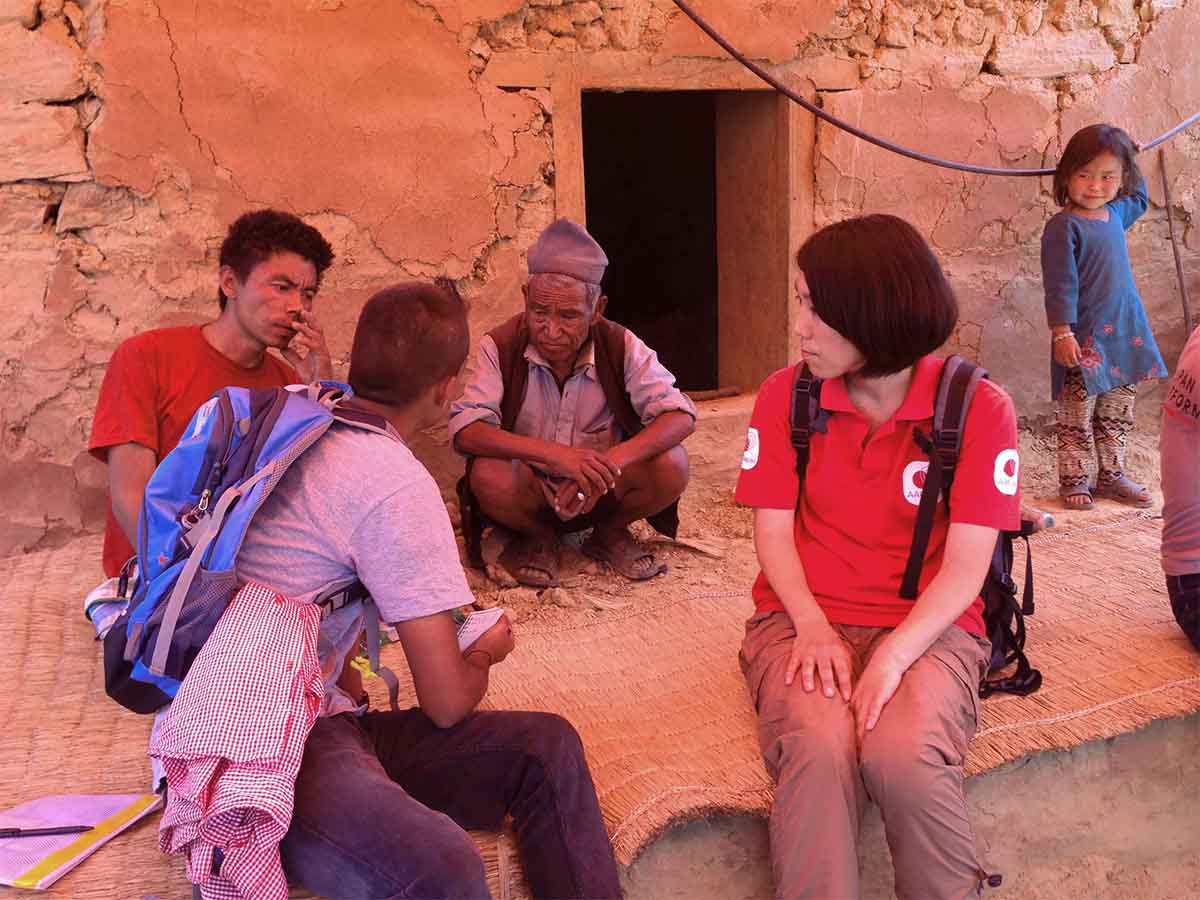※ネパール地震緊急支援にて、現地の方へインタビューする古川さん(右)
