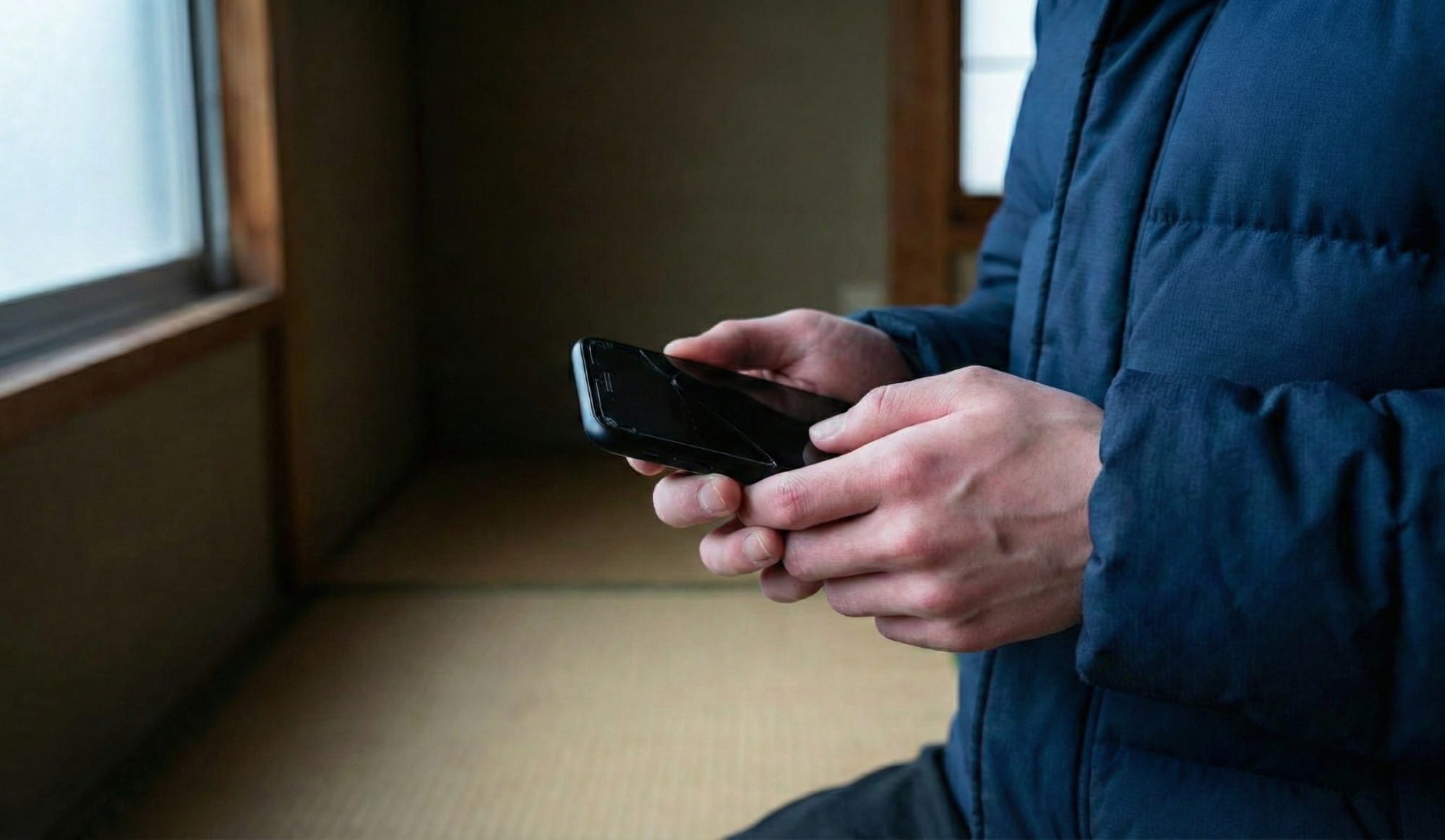 古い木造アパートで、ショウさん(仮名・20歳)は布団の中で小さく体を丸めていました。 室内にもかかわらず、厚手のダウンジャケットを着込み、フードを深くかぶり、マフラーまで巻いています。吐く息は白く、枕元の水は冷え切っています。
