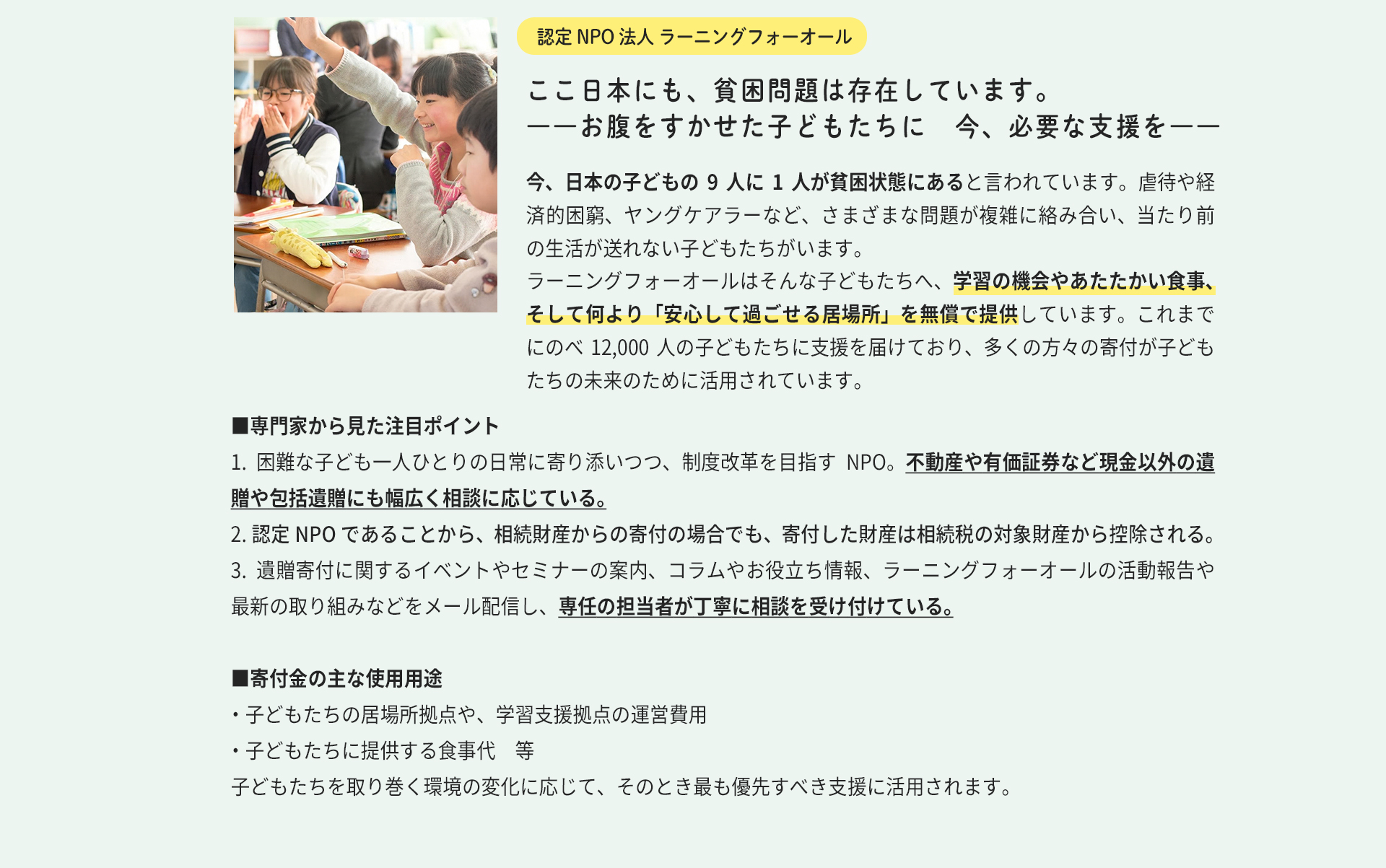 子どもたちに未来を贈る、遺産を寄付するという選択肢