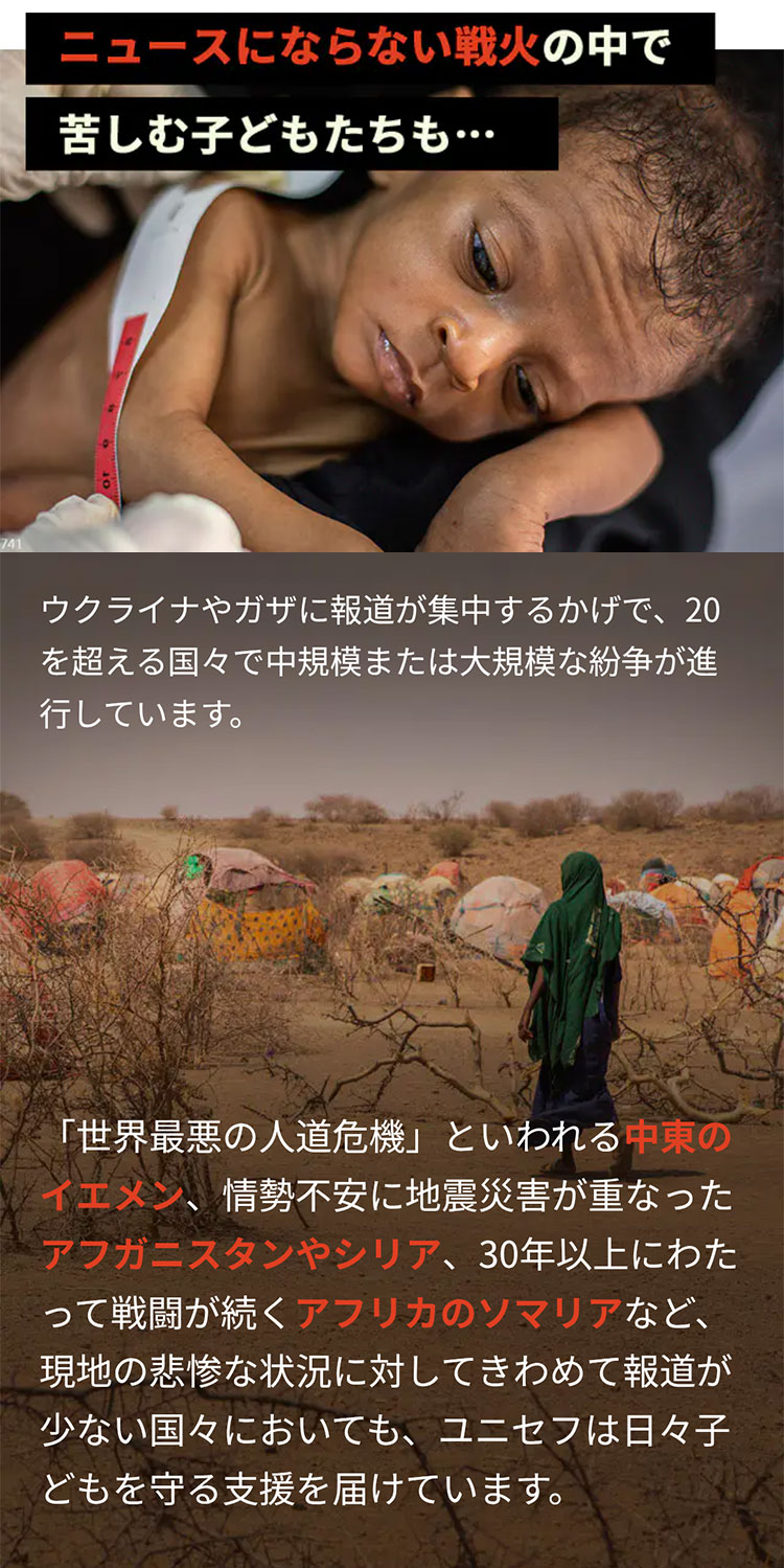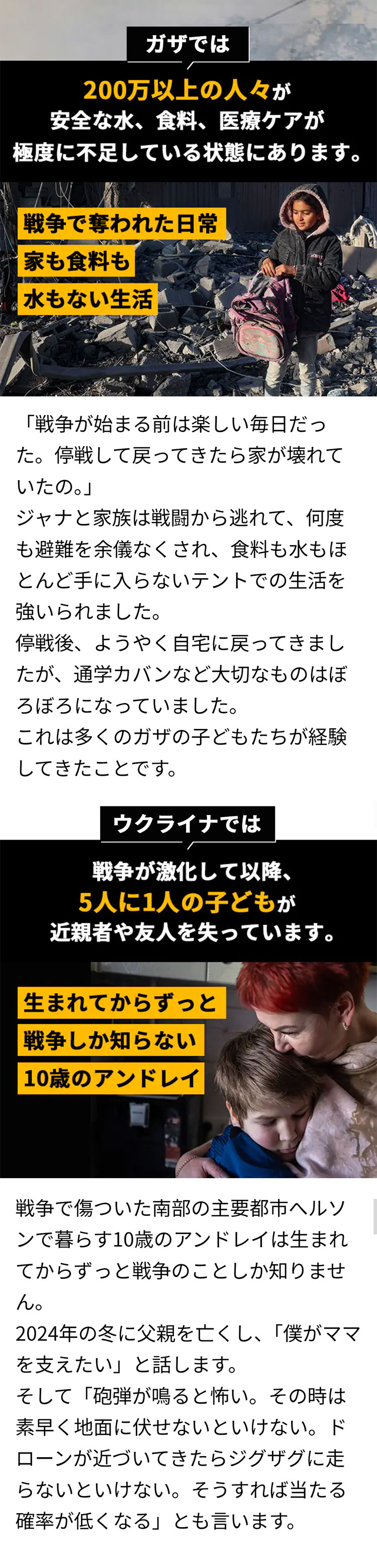 ※ご寄付は、紛争、災害、貧困など最も脆弱な立場にある世界の子どもたちへの支援に役立てられます