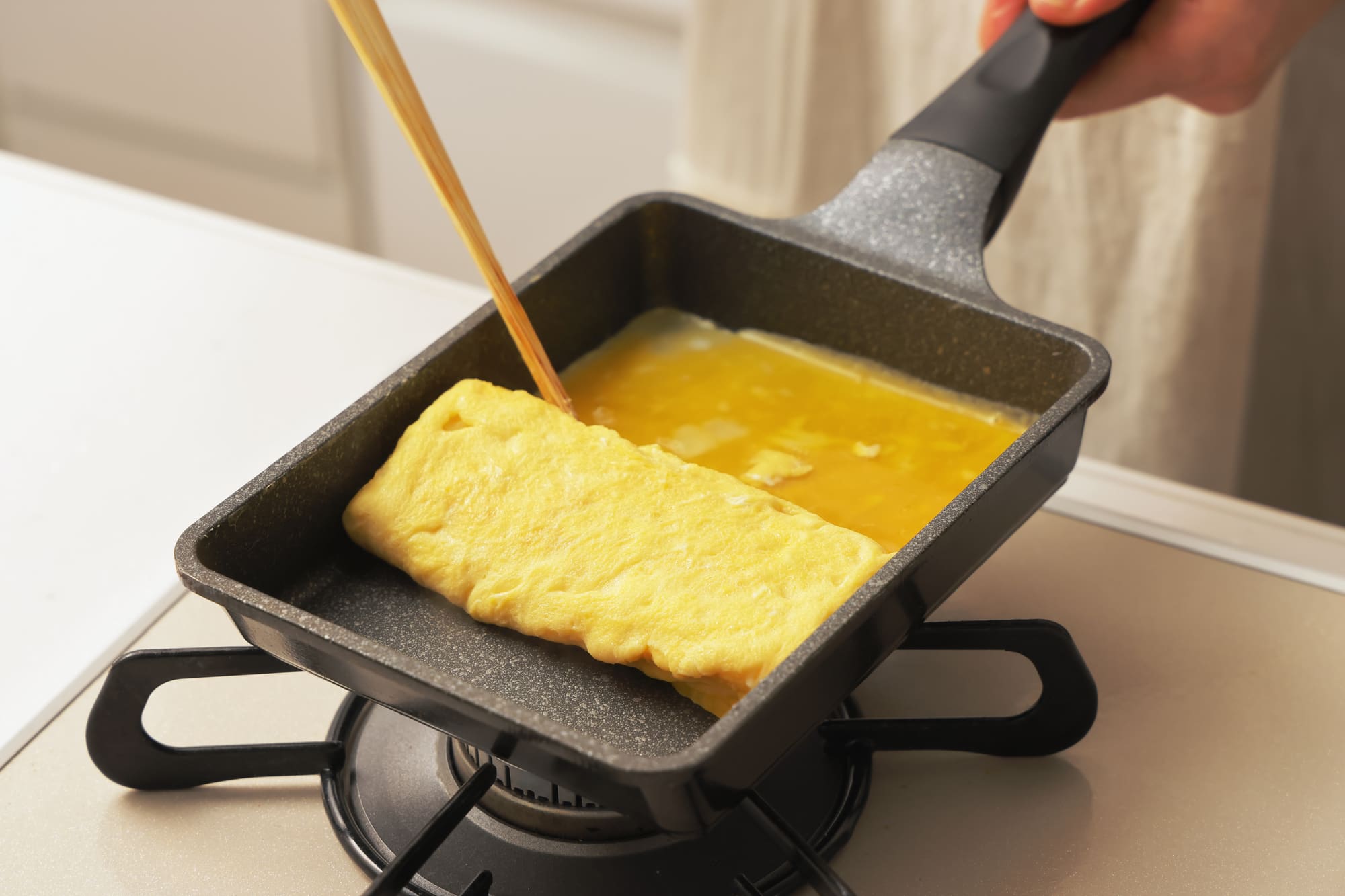 ふんわり焼けた卵焼きを一口食べた子が「おいしい!」と笑顔を見せると、