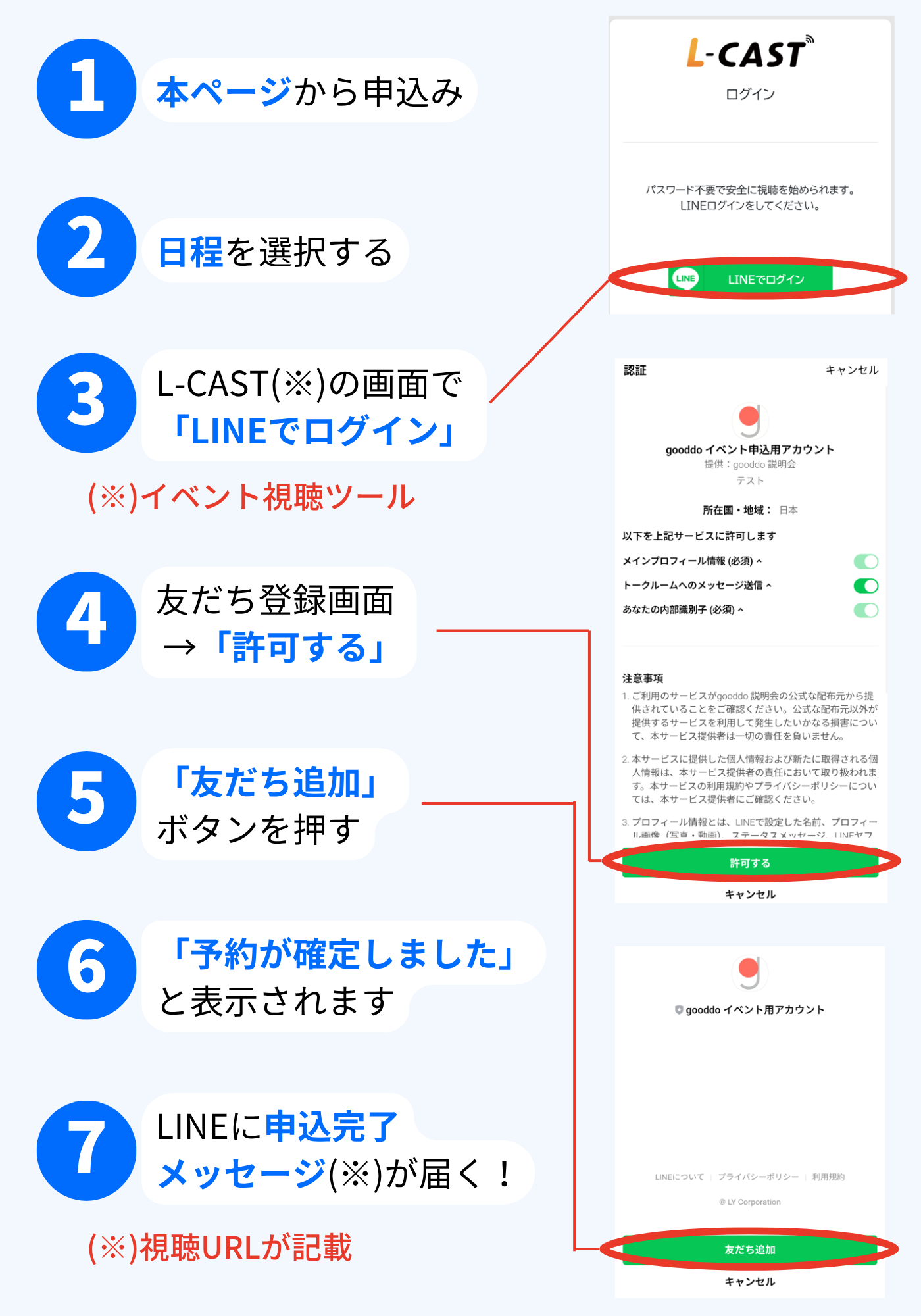 →ご参加にあたってのご案内や、当日のご参加は全てLINEにて行います。