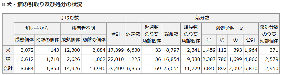 (出典:環境省 動物愛護管理行政事務提要の「殺処分数」の分類)