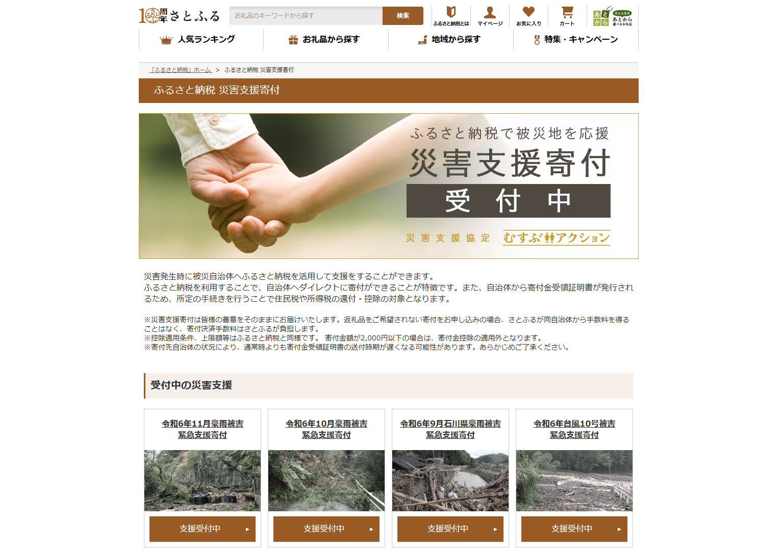 さとふるさんが行っている「災害支援寄付」について教えてください!