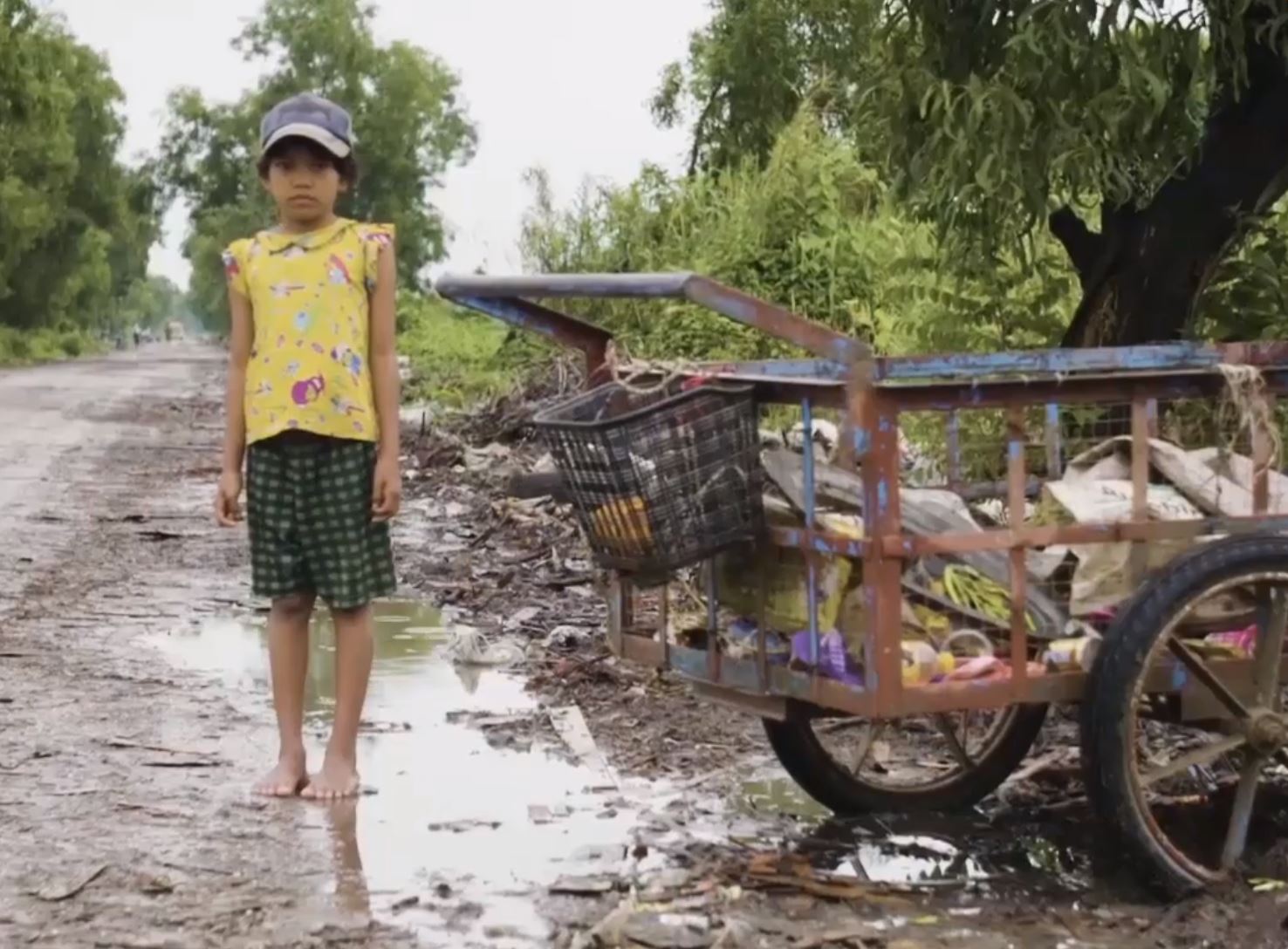 今は、お母さんと2人、重たいリヤカーを引きながら1日中ゴミ拾いをして、それを売って生活しています。